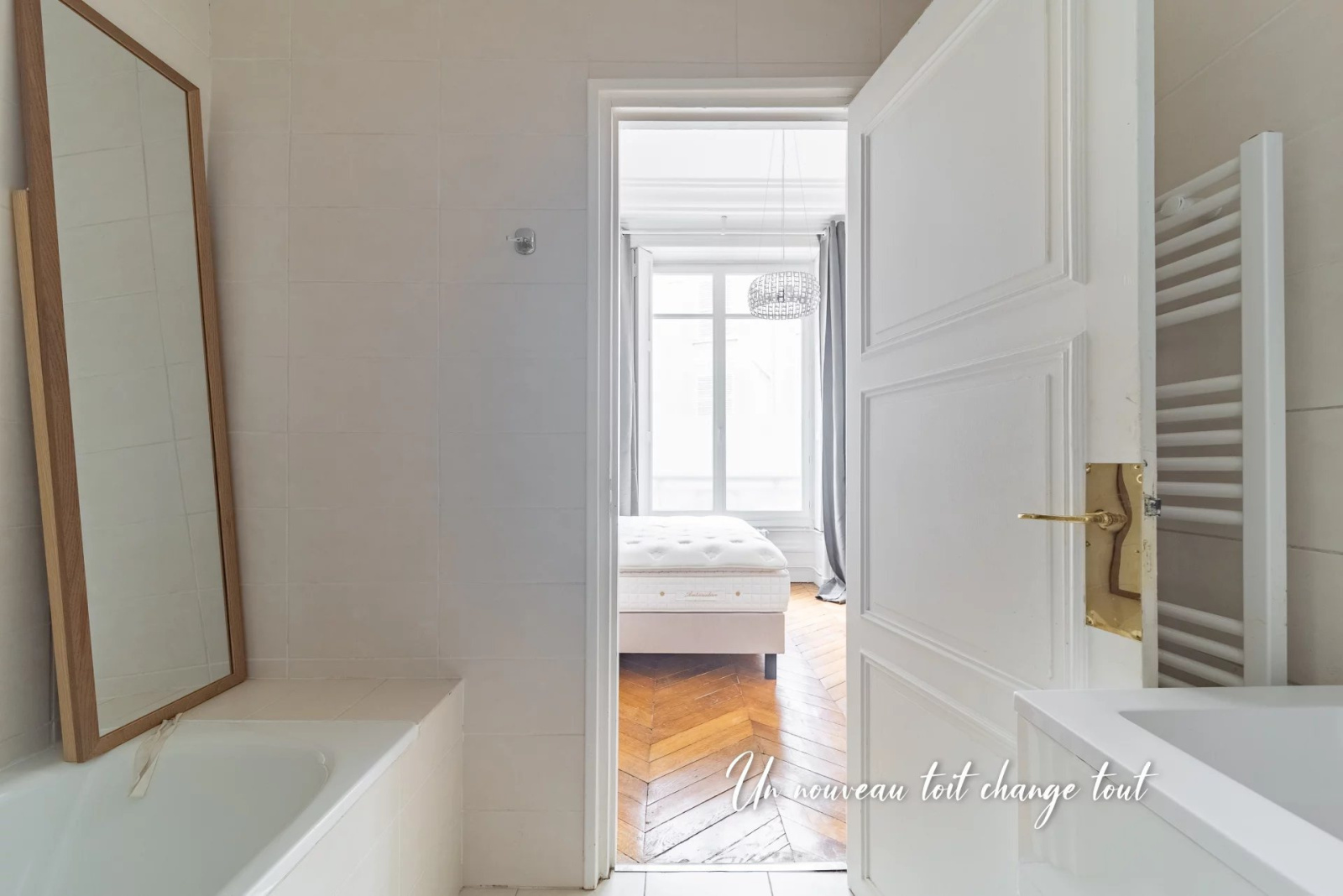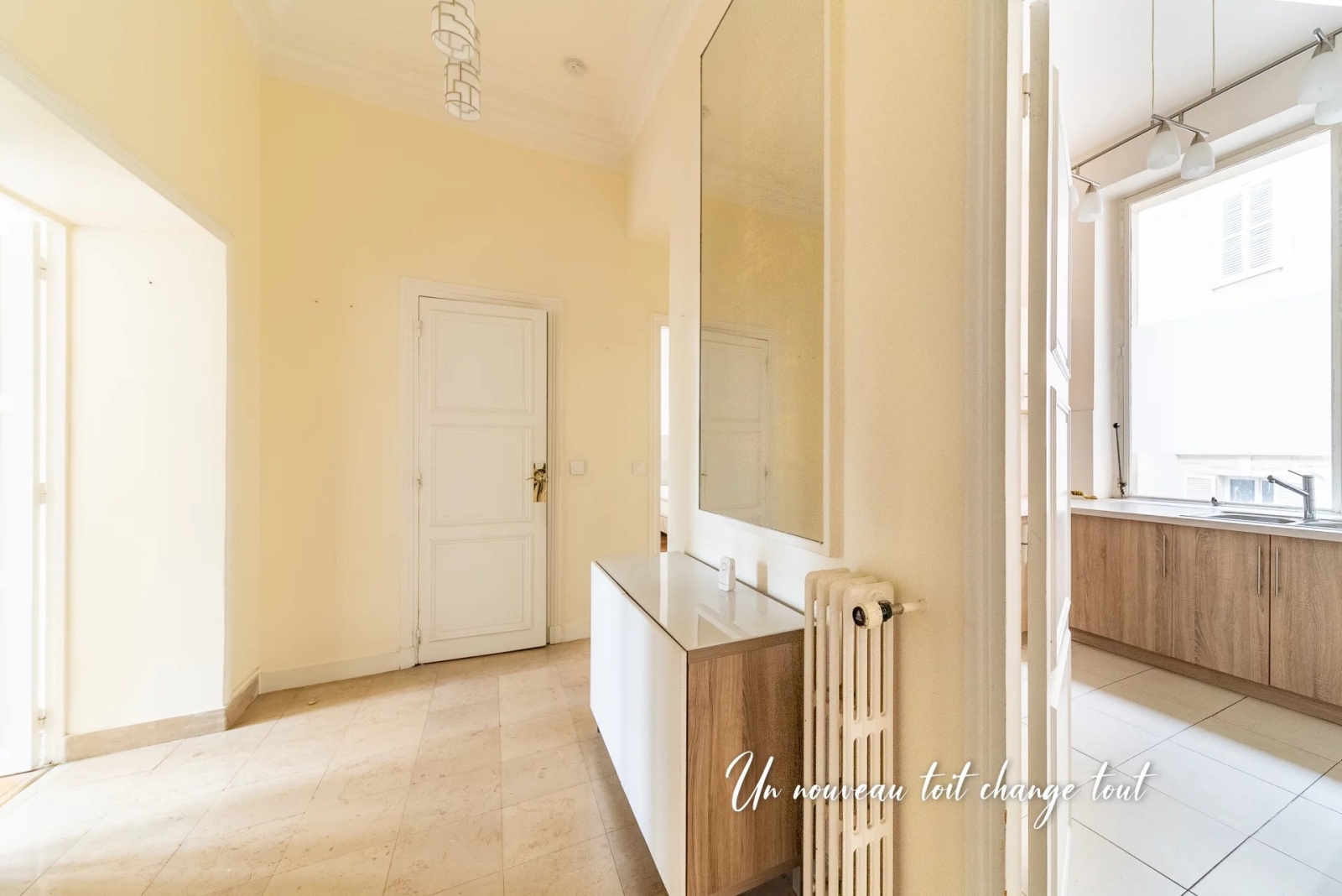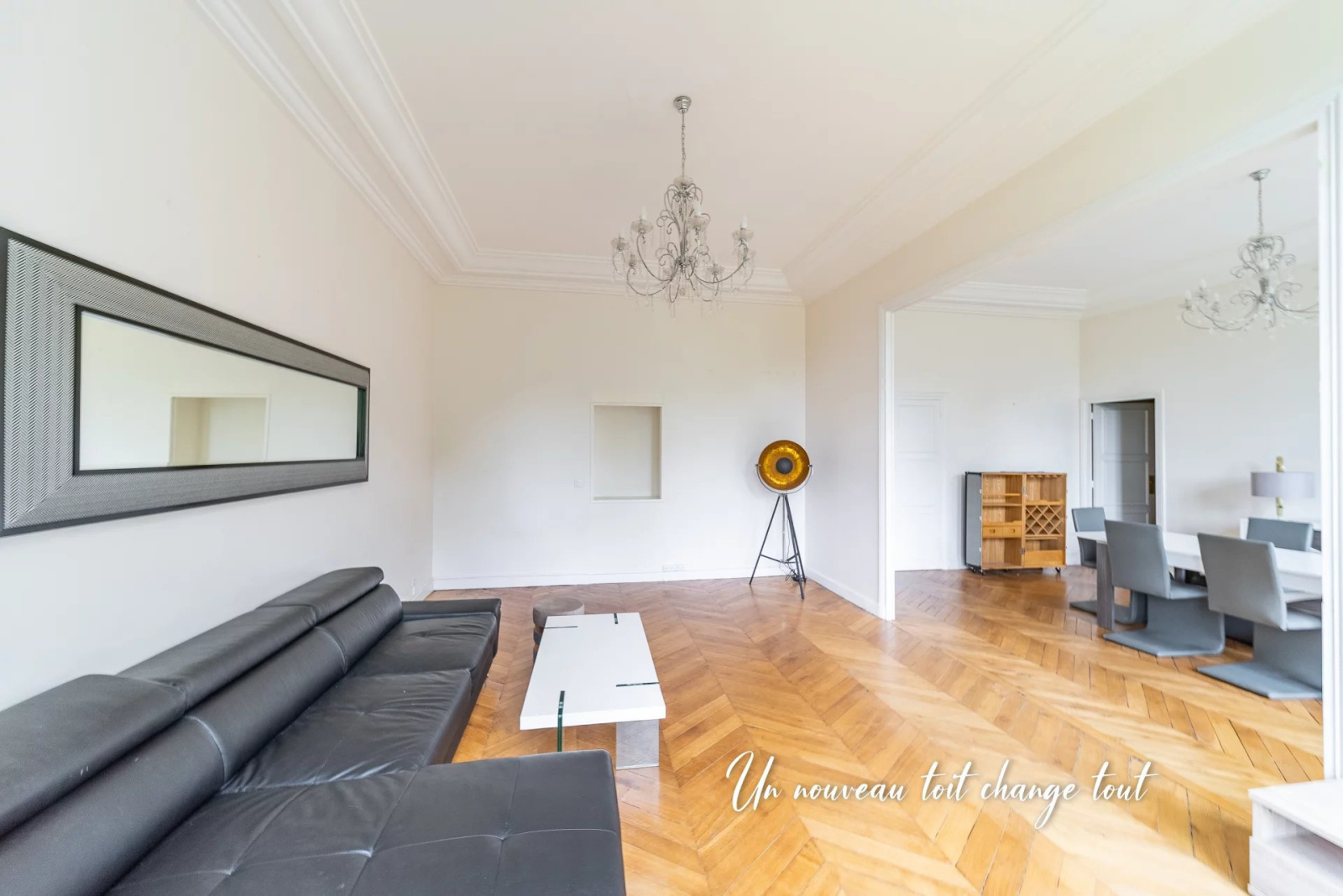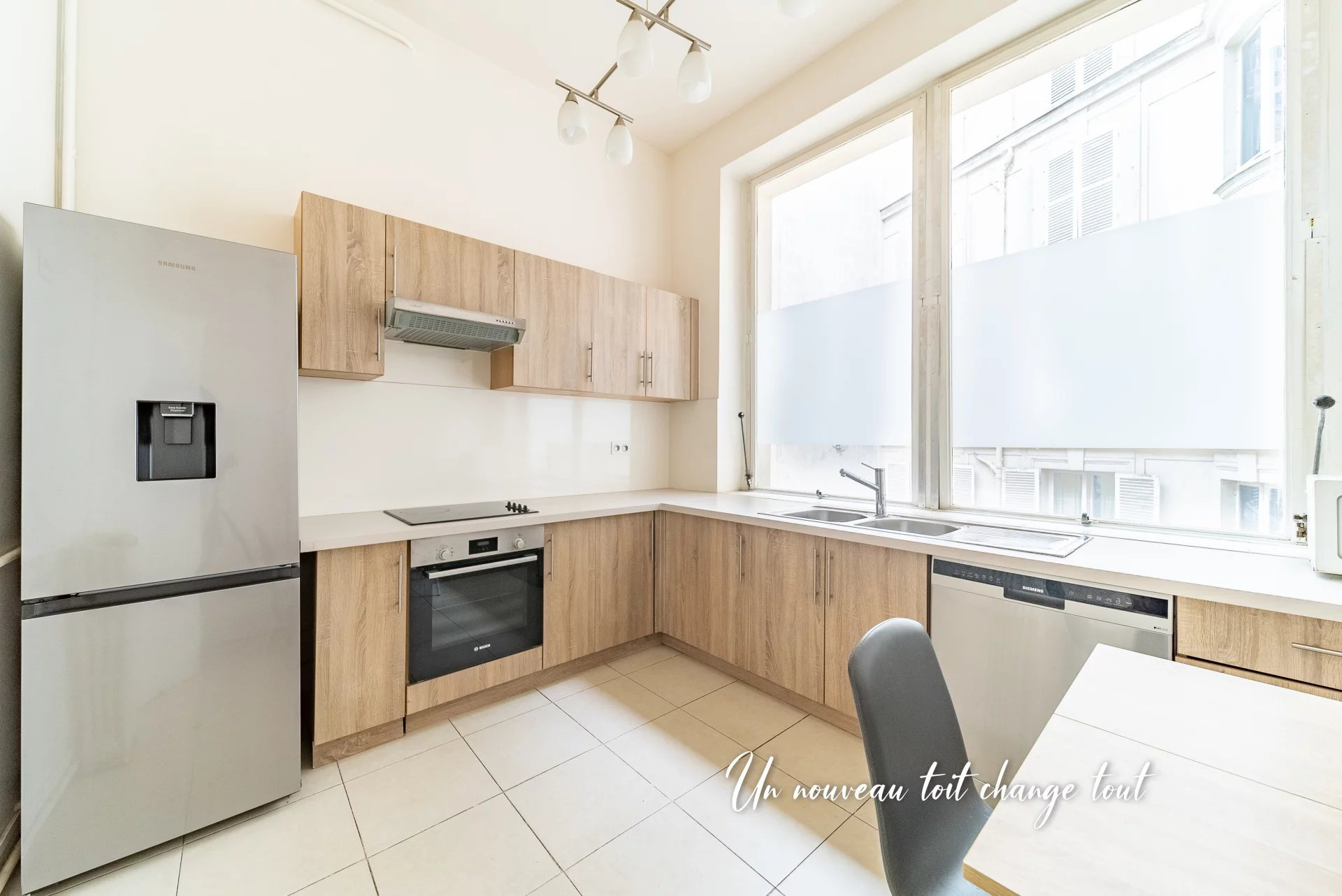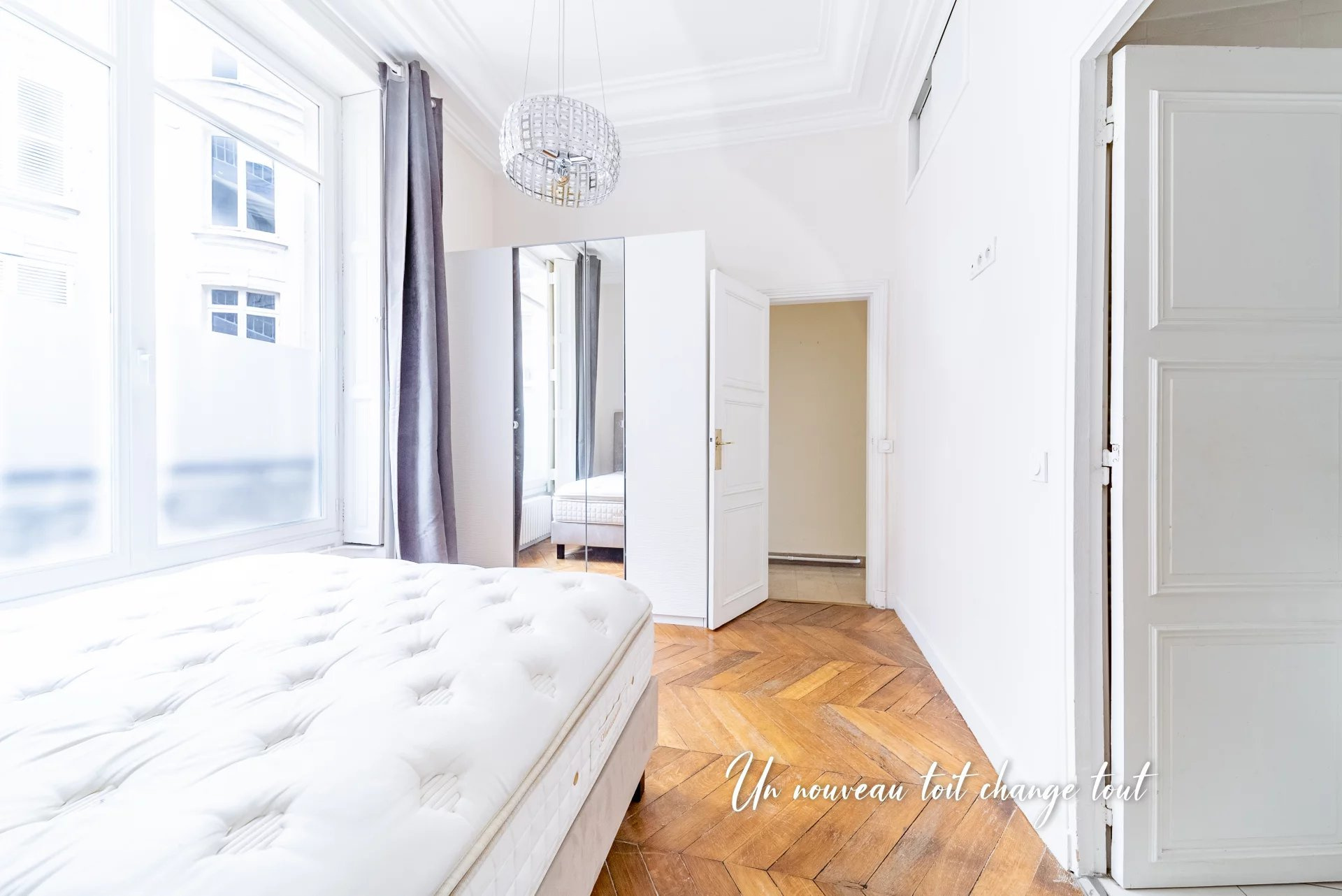 Belle luminosité, 2,40 mètres de hauteur sous plafond, parquet en pointe de Hongrie. L'agencement des pièces est idéale avec deux grandes chambres indépendantes, un séjour, une salle à manger, une cuisine équipée dînatoire, un toilette séparé, une salle de bains, une salle d'eau, dressing.