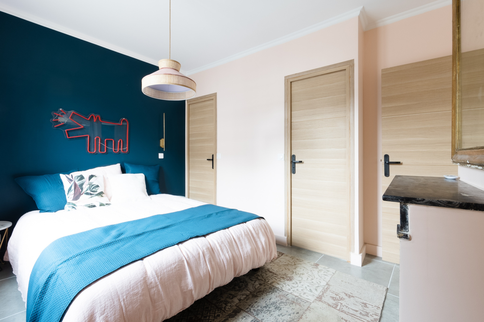 La chambre à coucher offre un espace de rangement pratique et donne dans une pièce dressing, tandis que la salle d'eau est dans un style moderne
