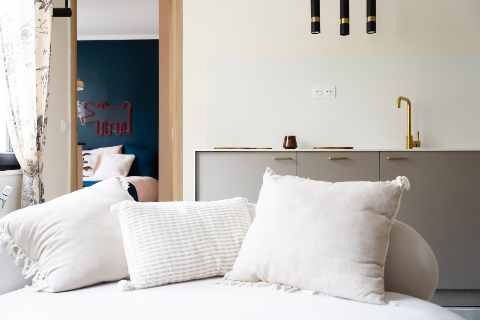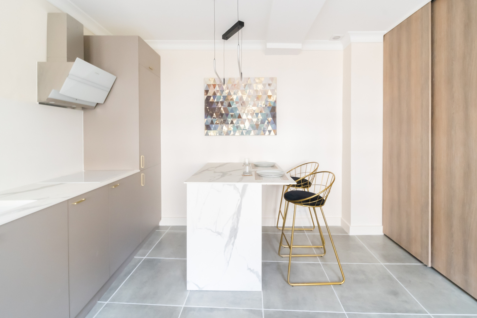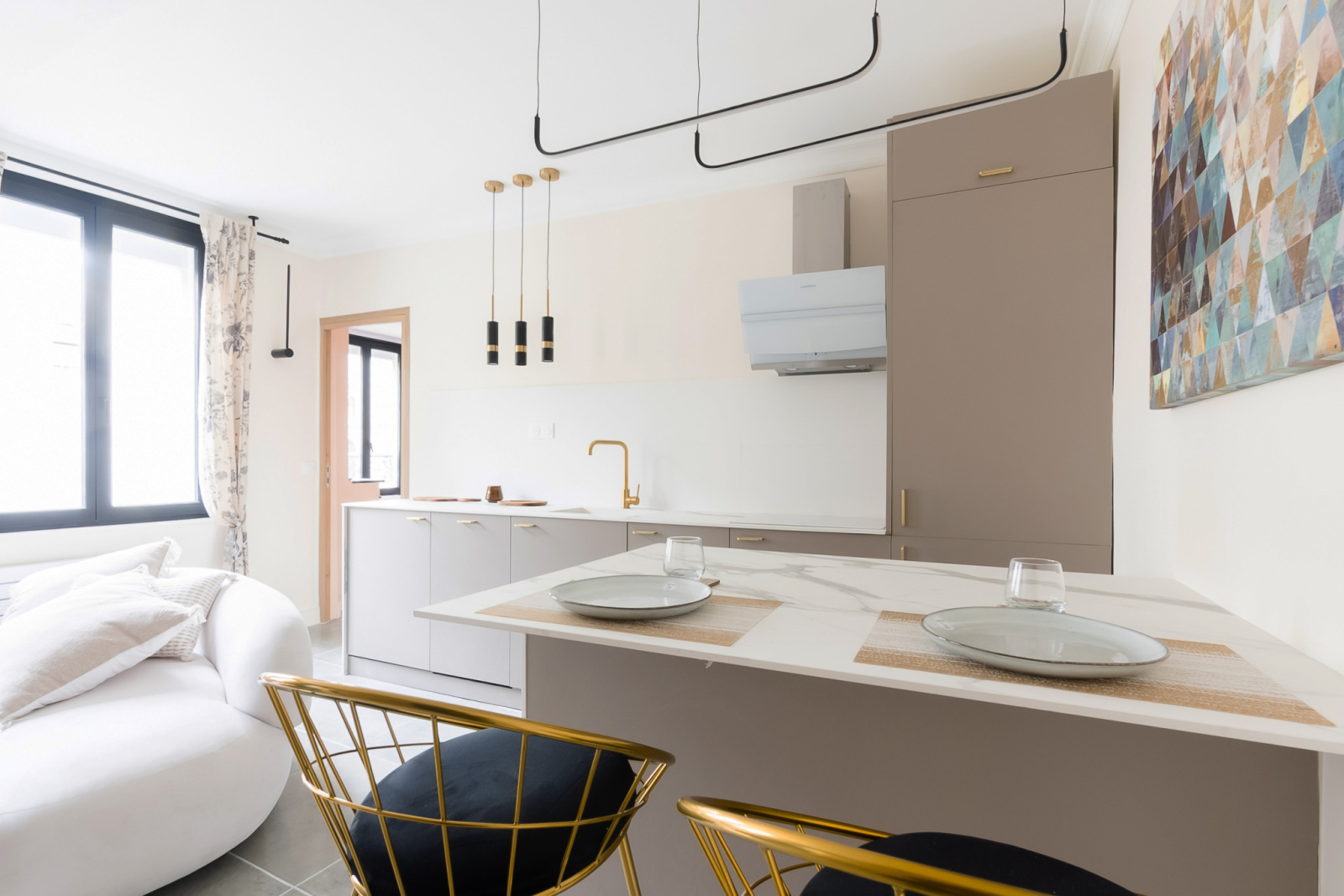 En entrant, vous serez séduit par le salon spacieux et lumineux, avec sa cuisine ouverte entièrement équipée. Imaginez-vous en train de partager un repas entre amis autour du bar ou de vous détendre confortablement dans le coin salon.