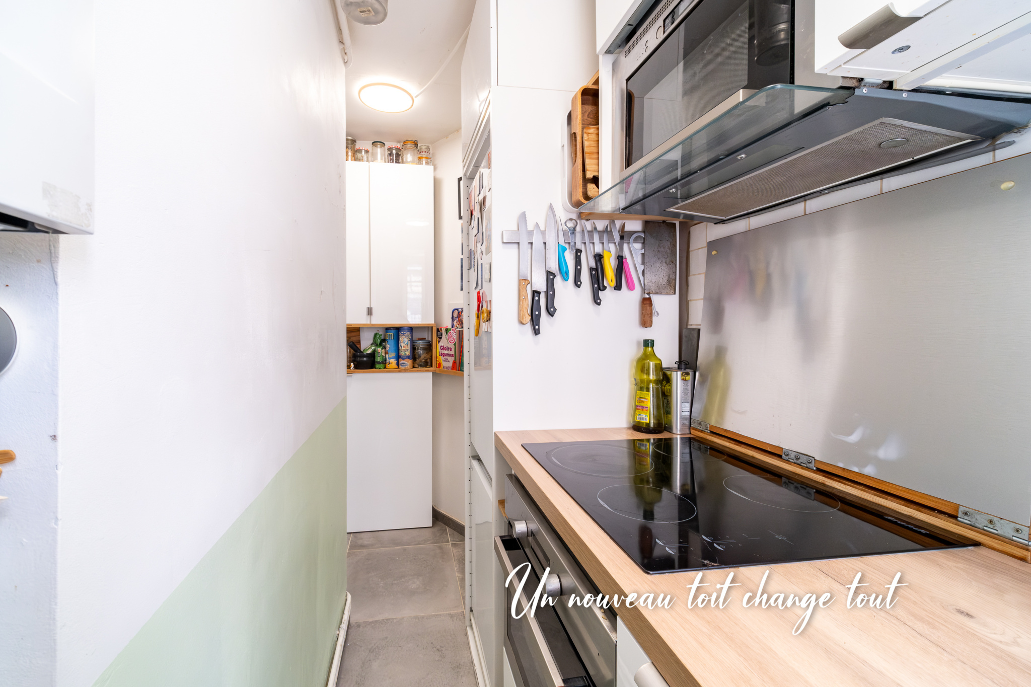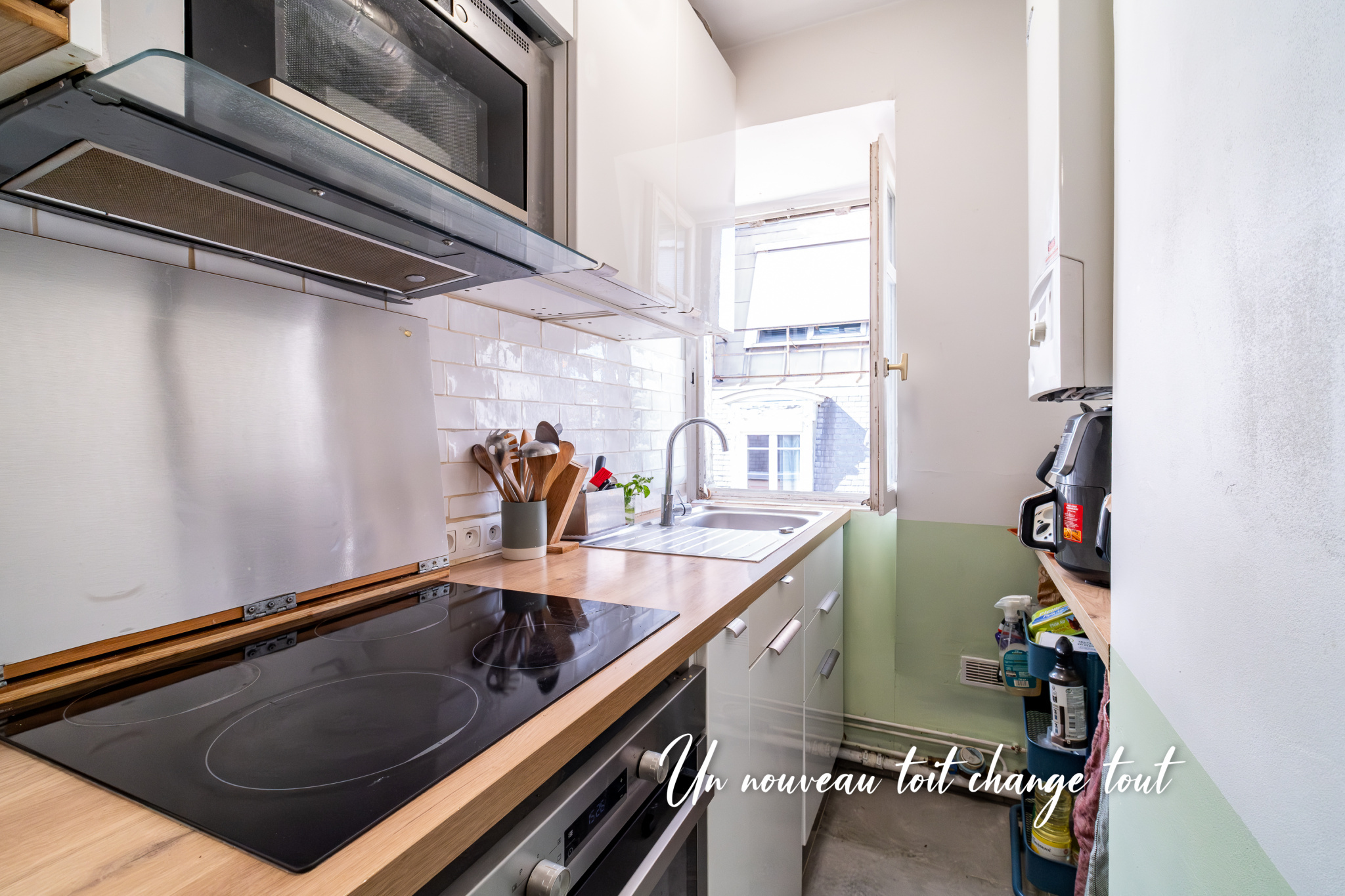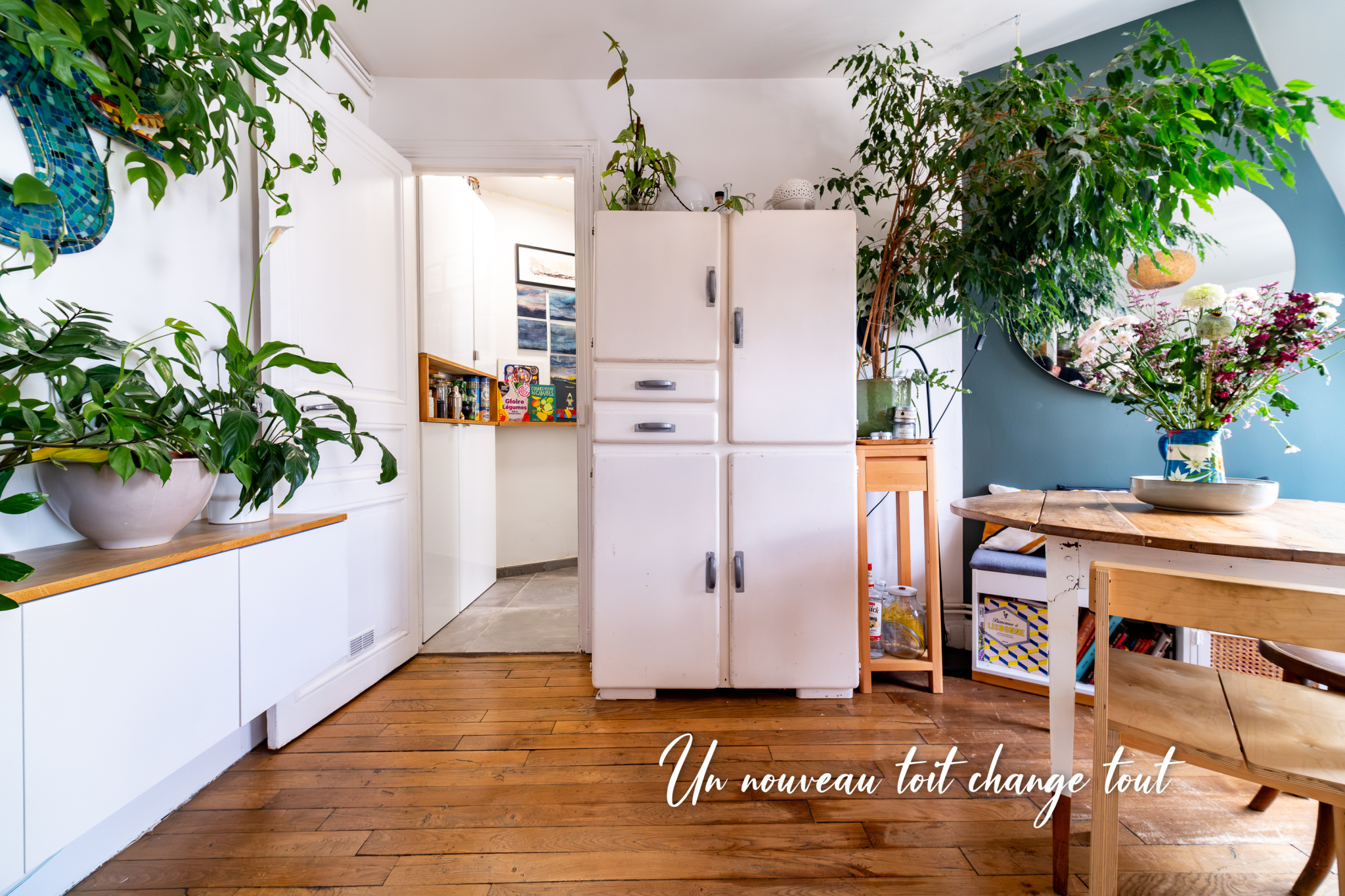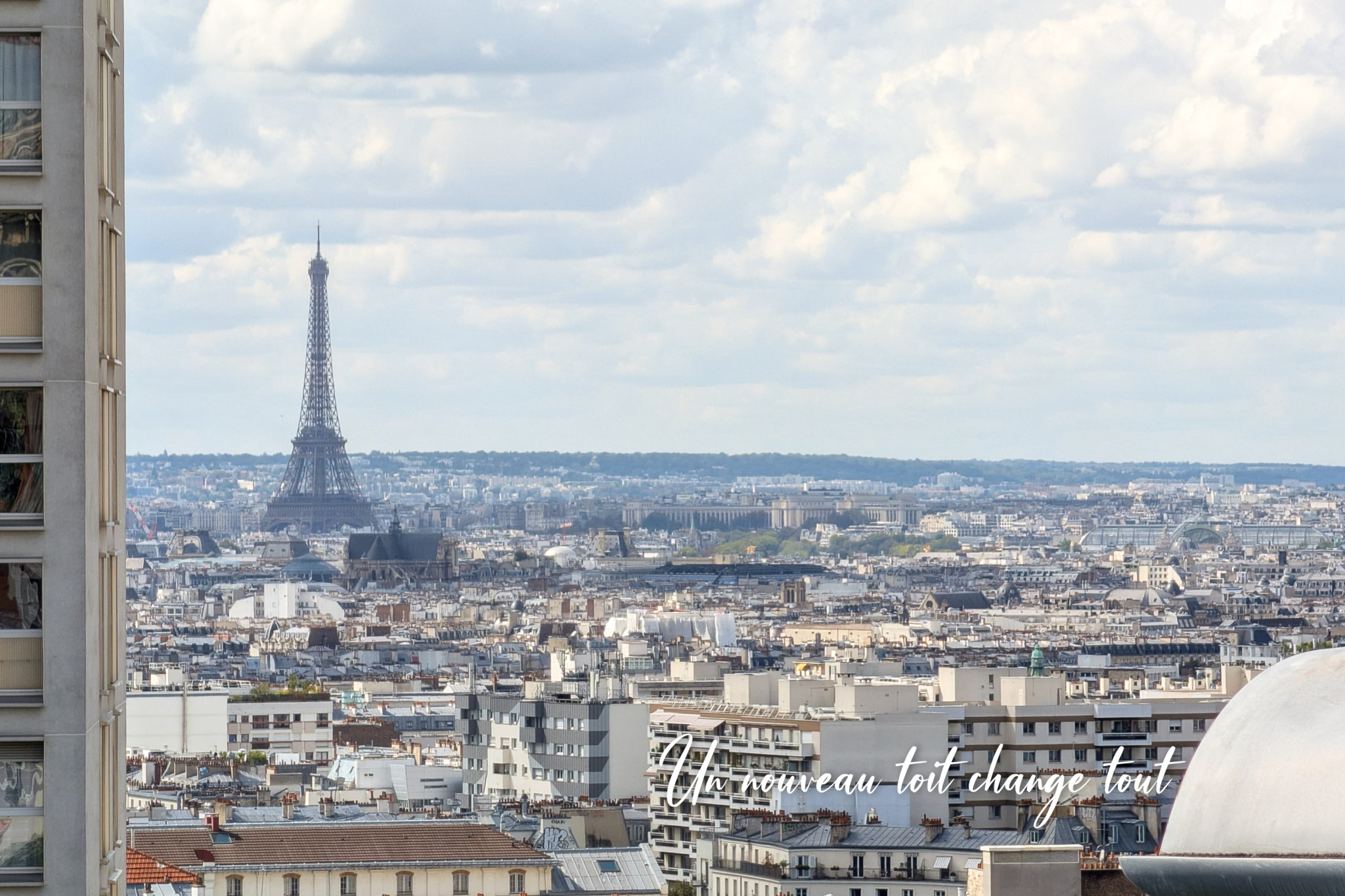 Depuis la cuisine, une petite vue sur la Tour Eiffel vient parfaire l’ensemble.