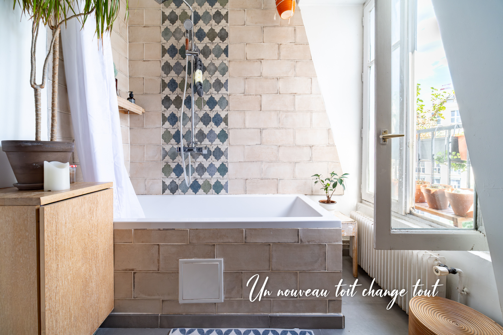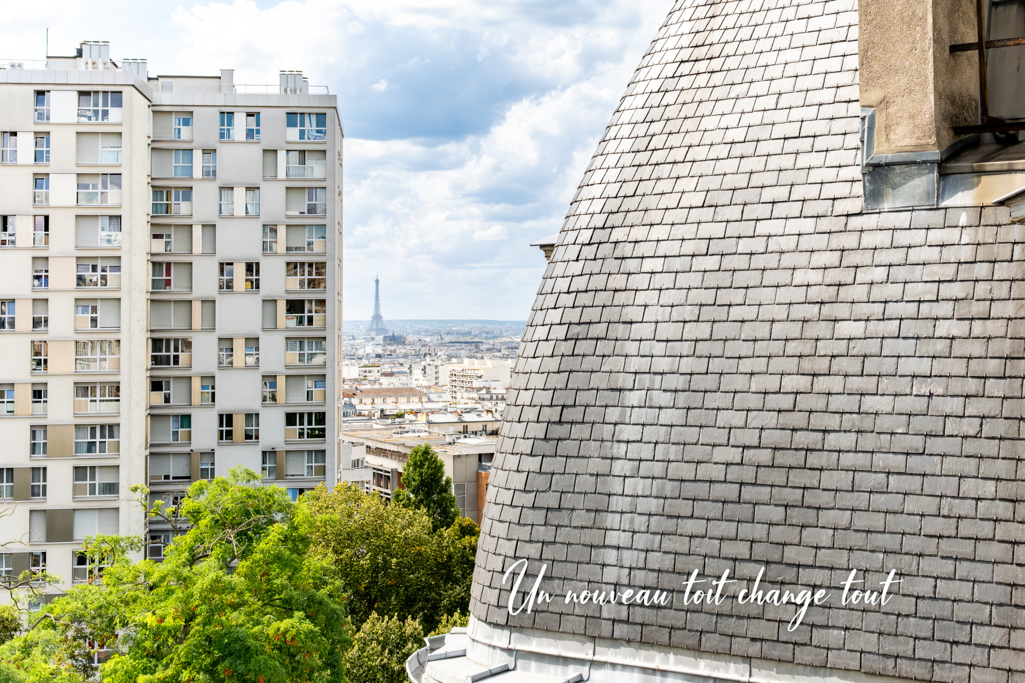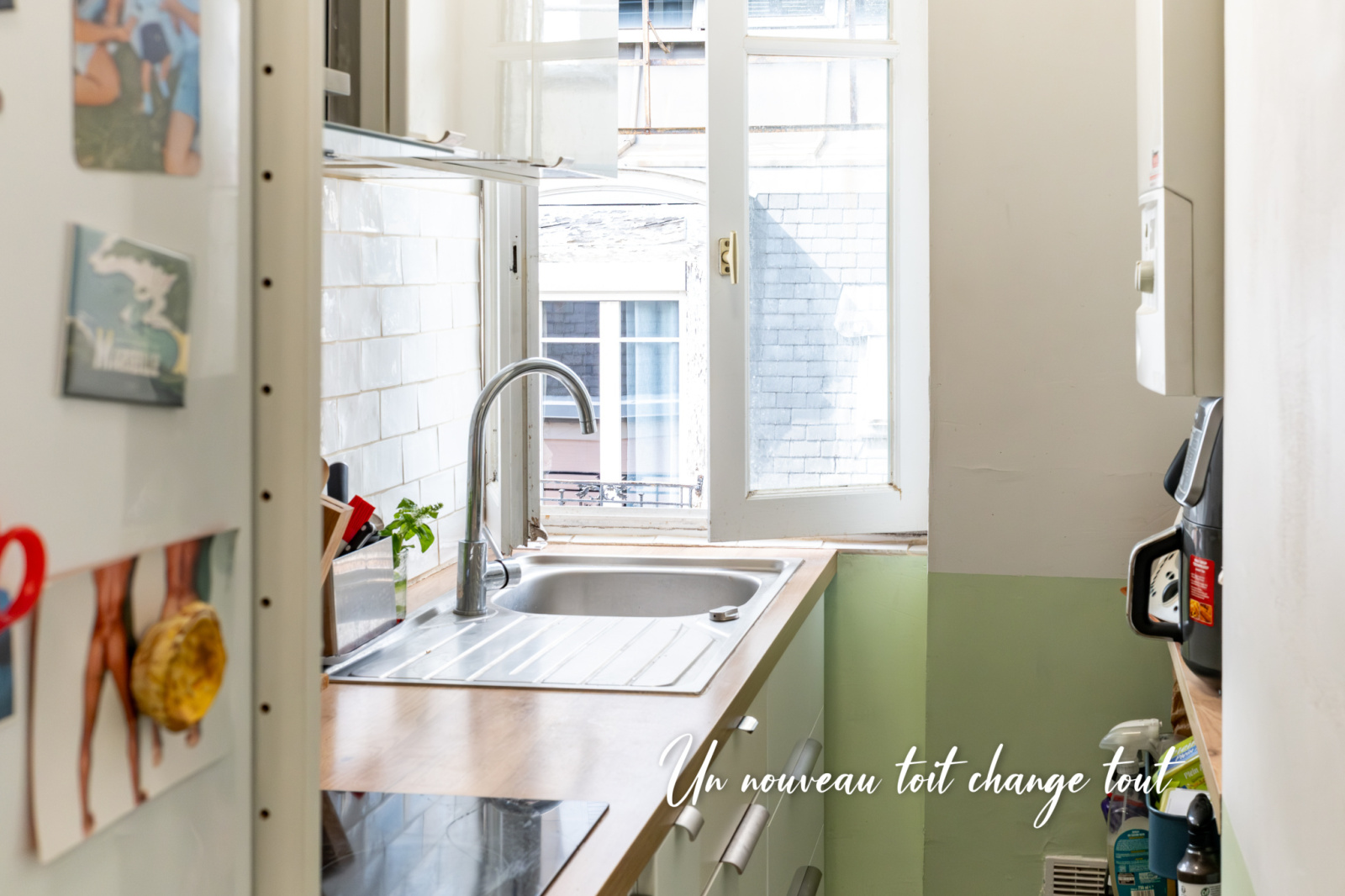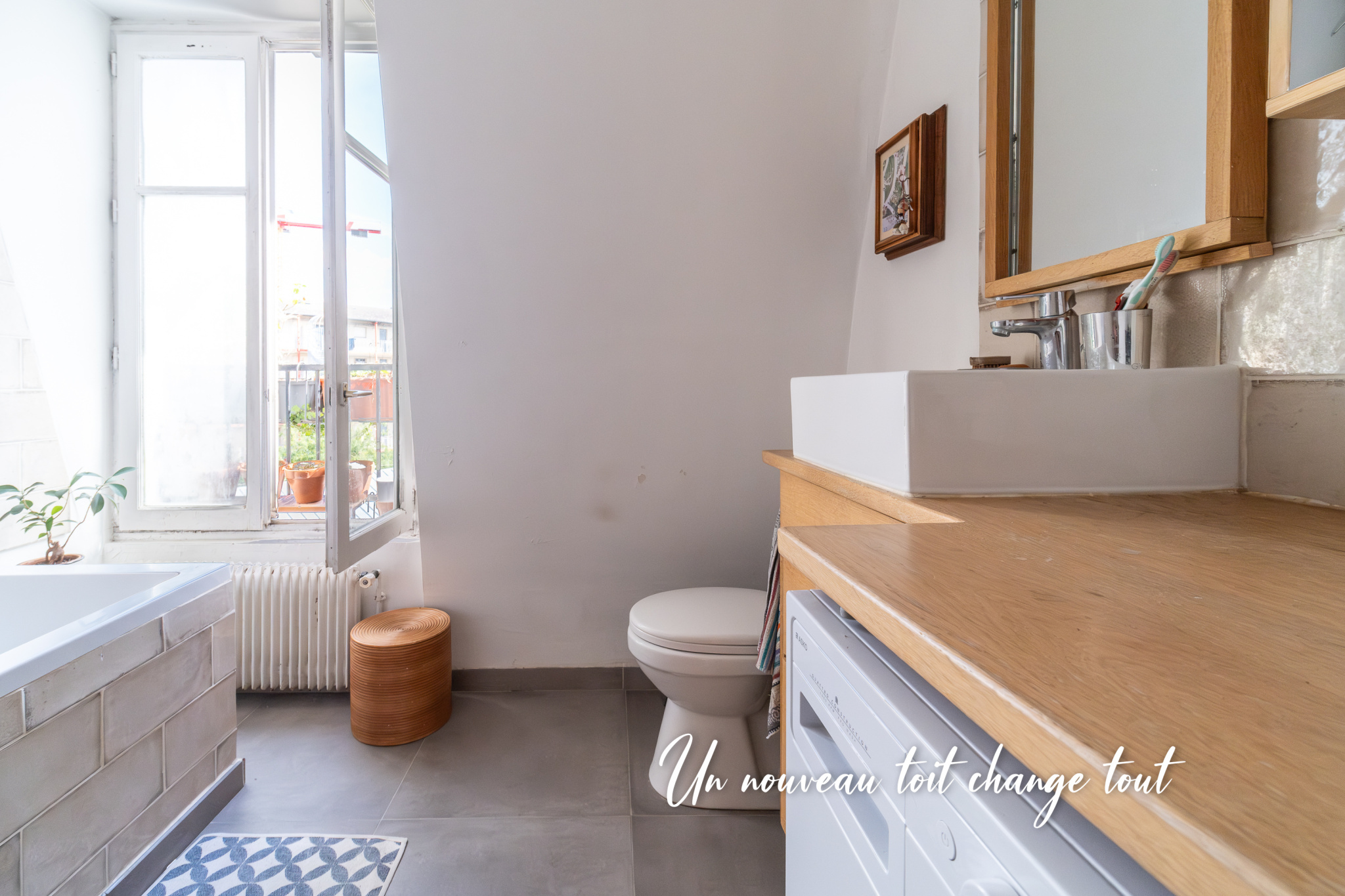 Depuis la cuisine, une petite vue sur la Tour Eiffel vient parfaire l’ensemble.