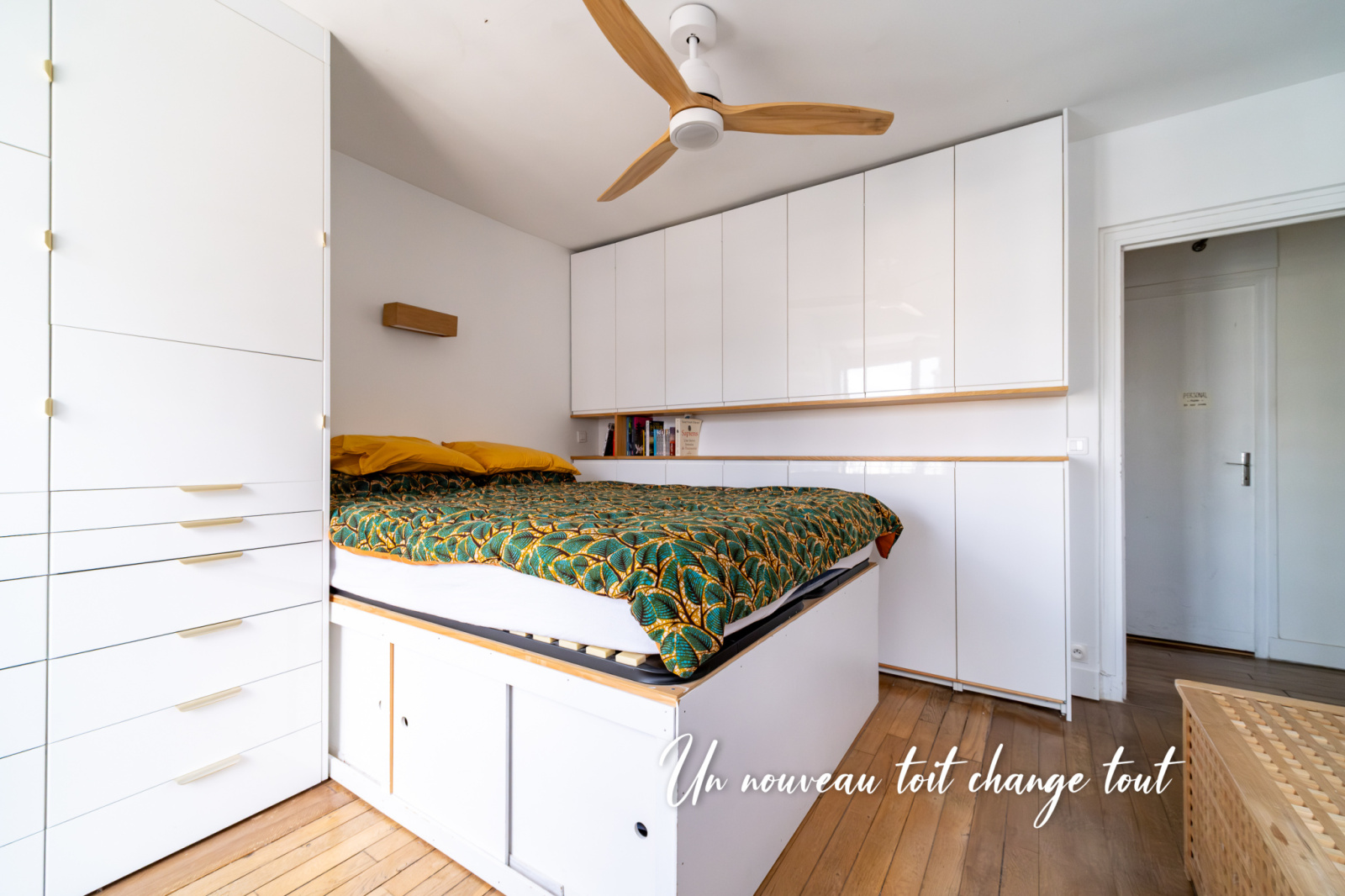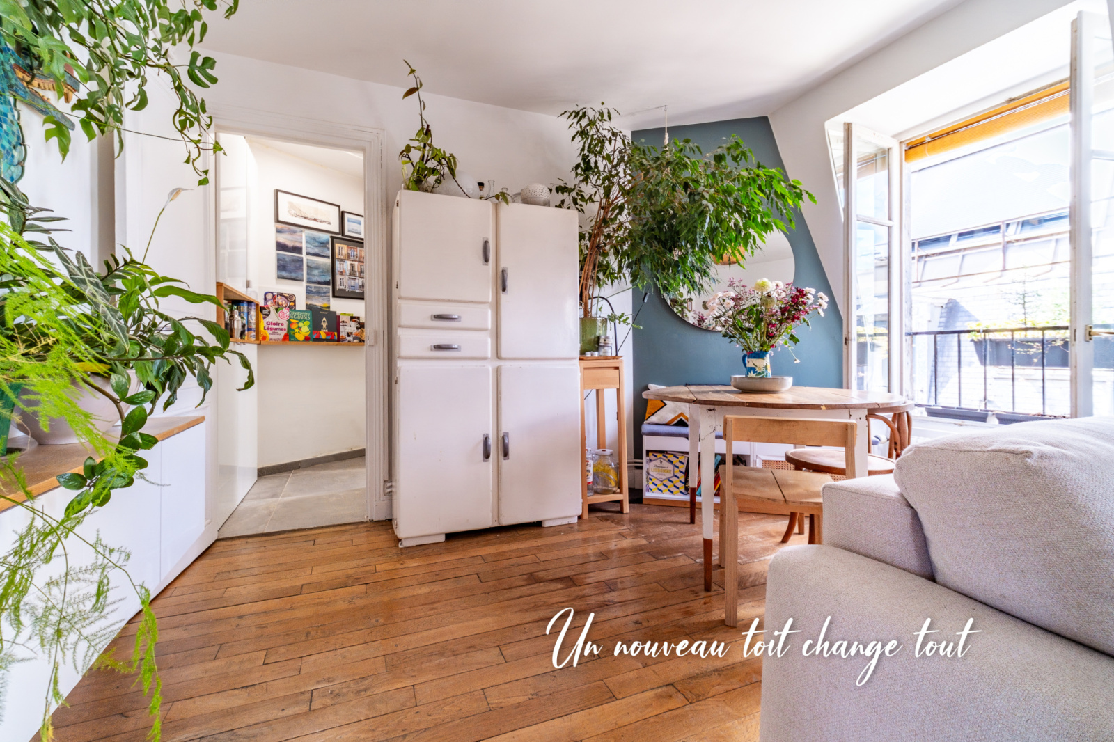 Situé rue de la Bidassoa au 7ᵉ et dernier étage sans ascenceur, ce charmant appartement de deux pièces traversant offre un calme absolu et une belle luminosité. Il se compose d’un séjour généreux de 18,75 m², d’une cuisine séparée de 4,91 m², d’une chambre de 13,56 m², d'un dressing ainsi que d’une salle de bains avec WC.