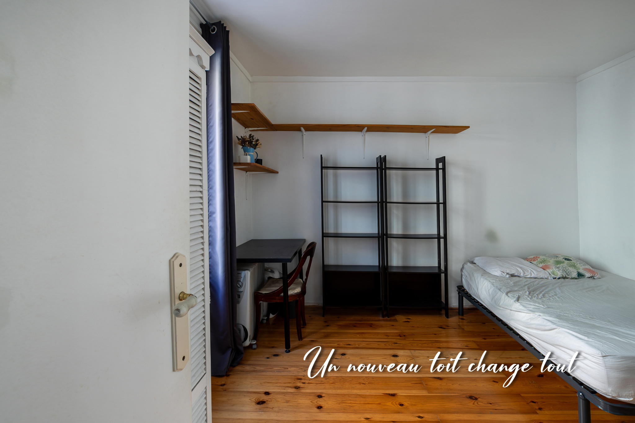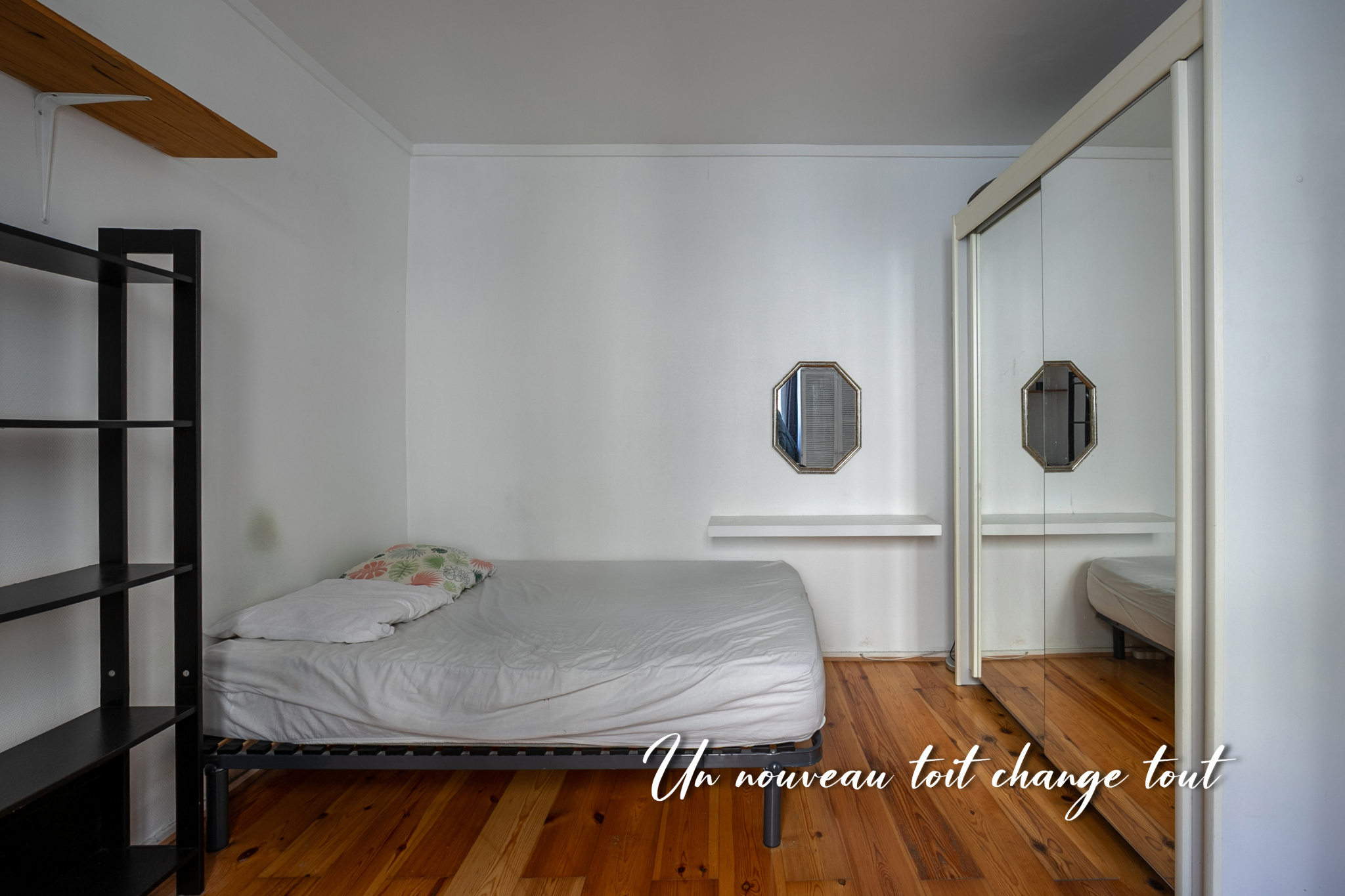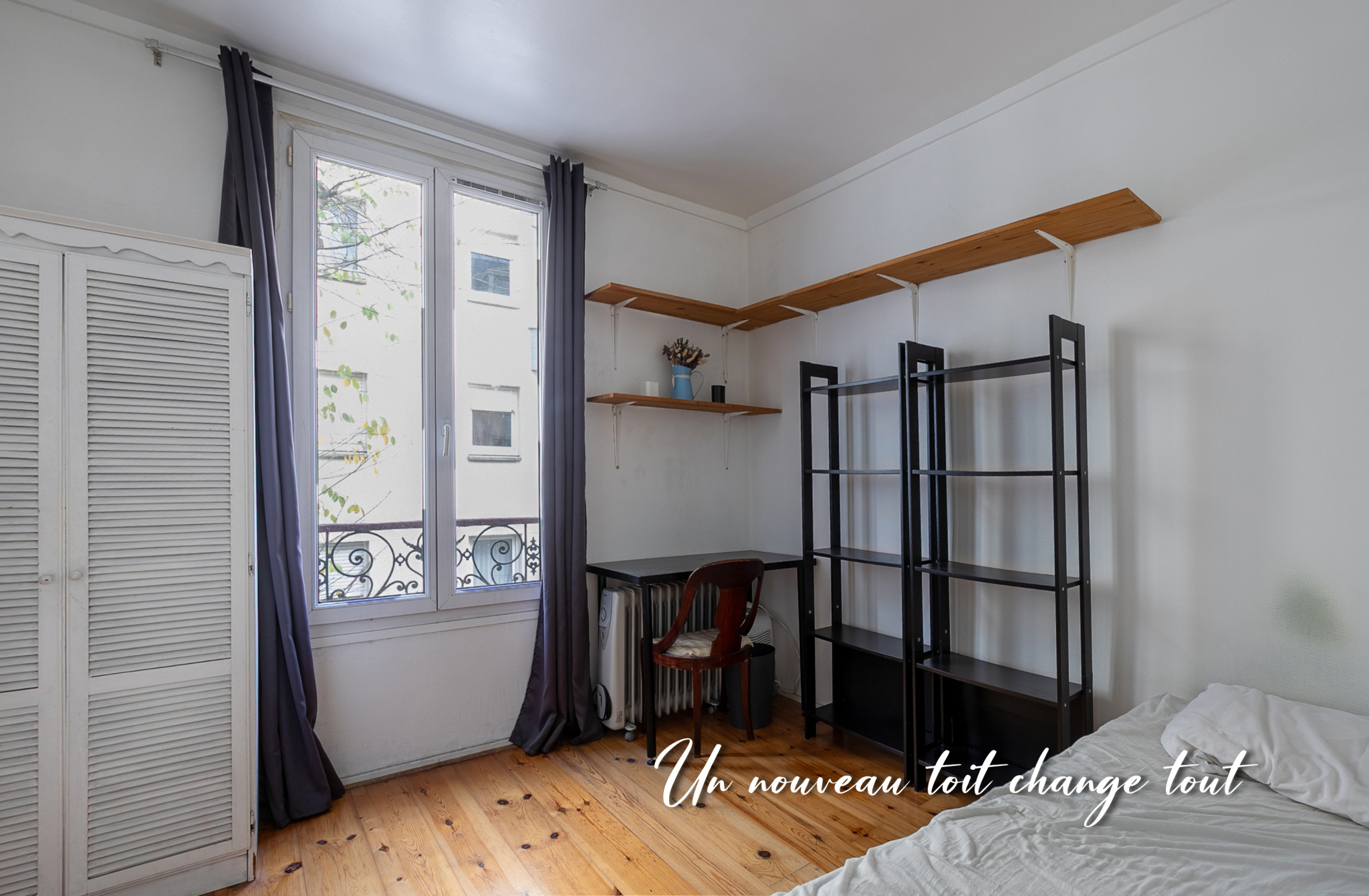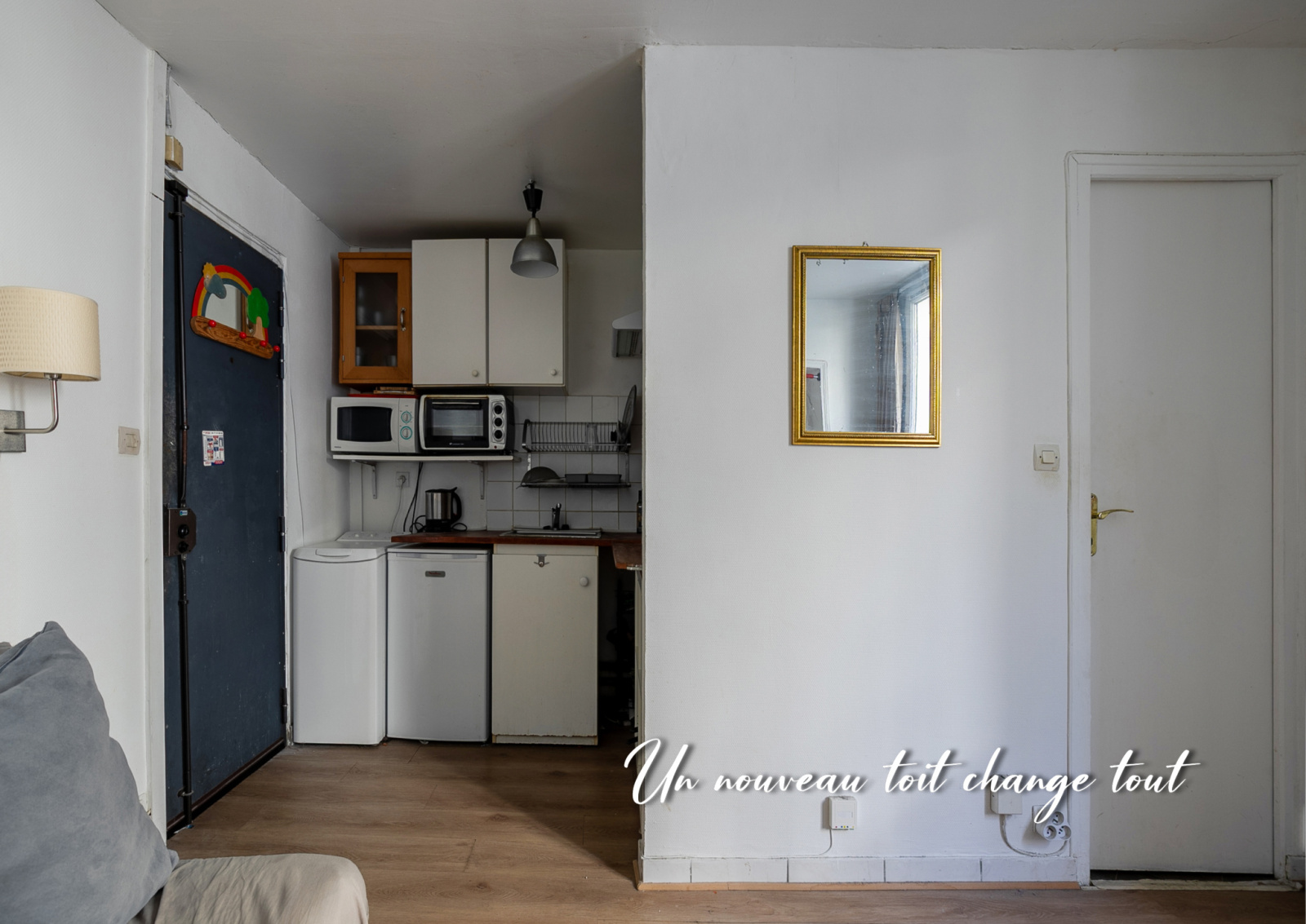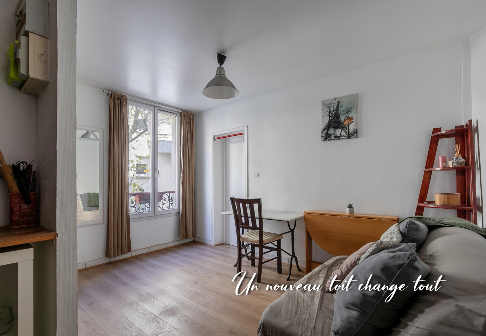 L’appartement nécessite quelques travaux de rafraîchissement, offrant ainsi l’occasion de le personnaliser à votre goût. Le séjour avec cuisine ouverte développe 12,56 m² et la chambre 12,22 m².