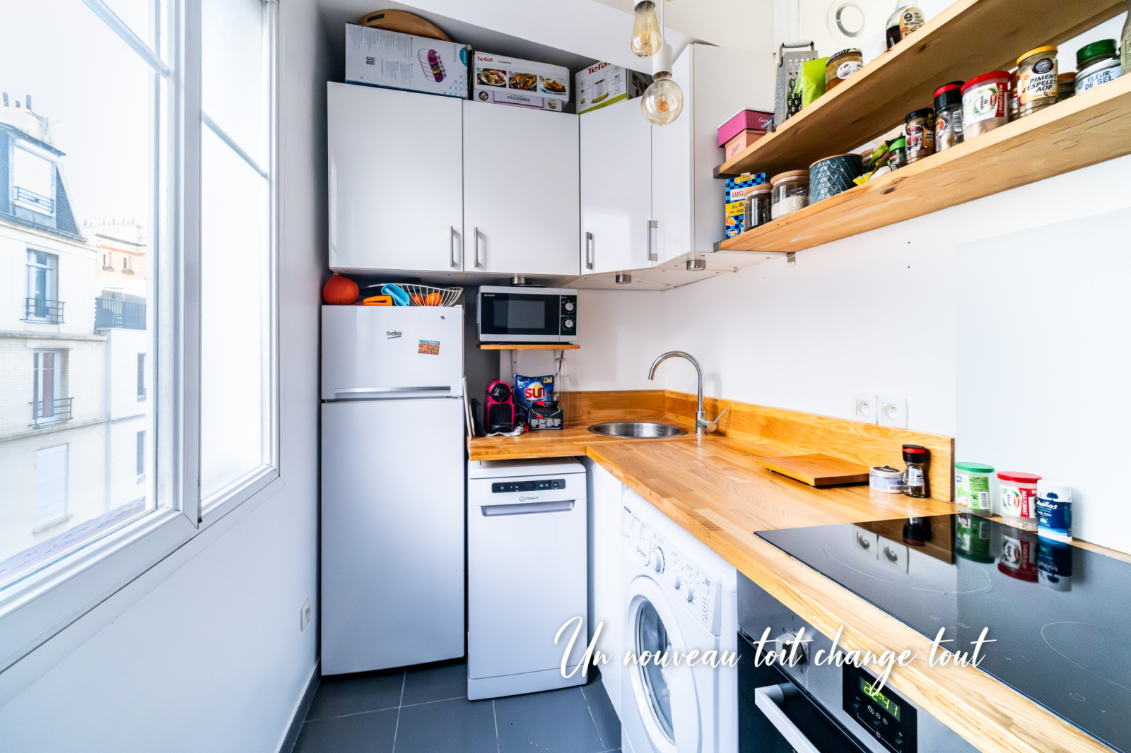 Situé au 4ᵉ étage sans ascenseur, cet appartement bénéficie d’une belle exposition Sud-Ouest, d’un agencement sans perte de place et de beaucoup de charme.