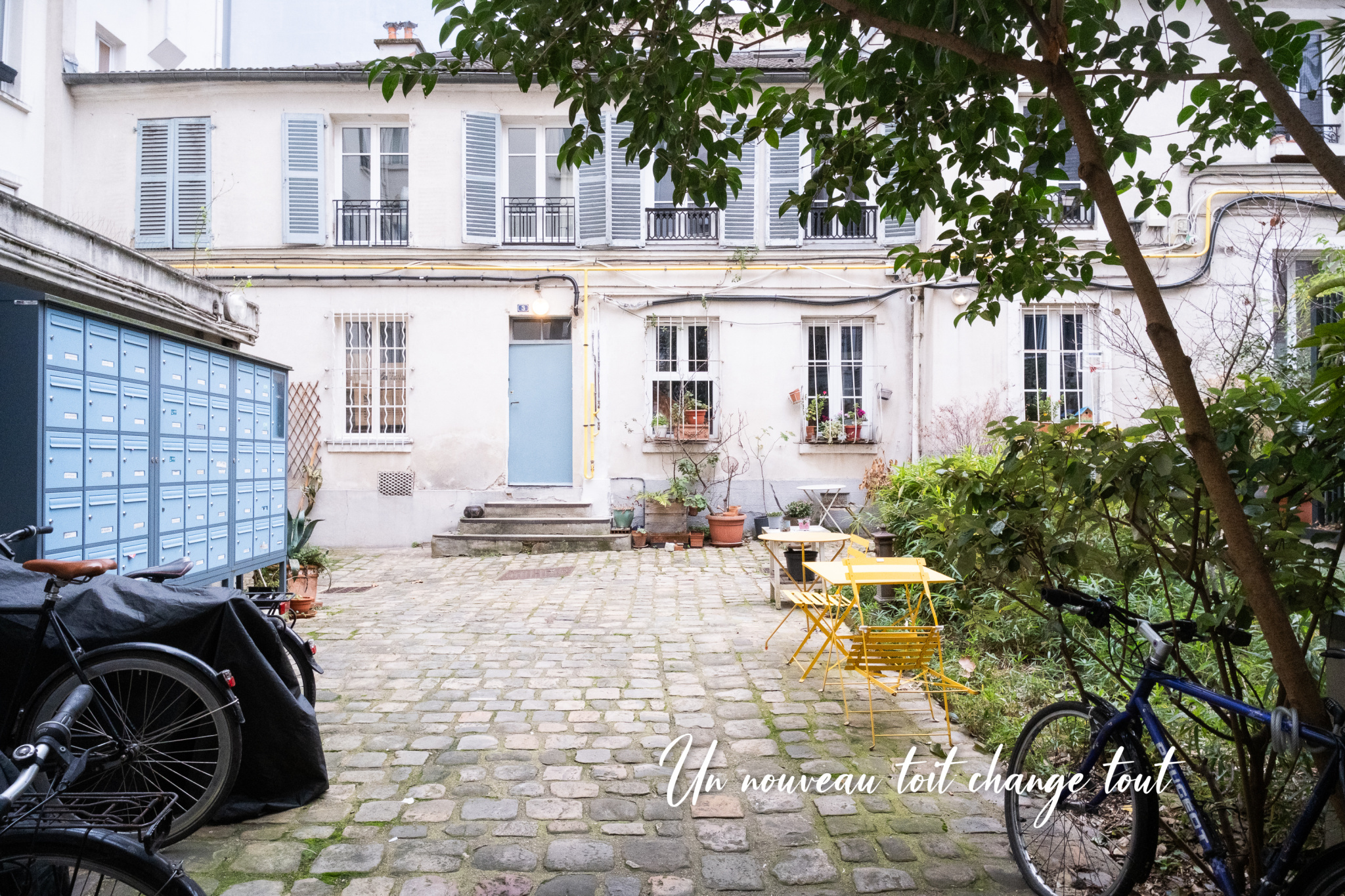 On entre dans cet appartement de 45 m², en parfait état, par un passage pavé.