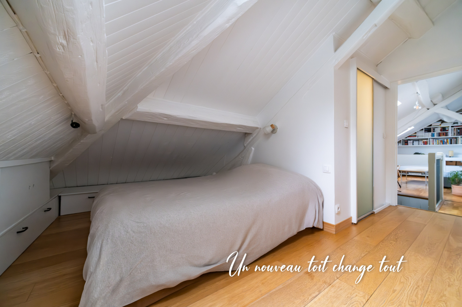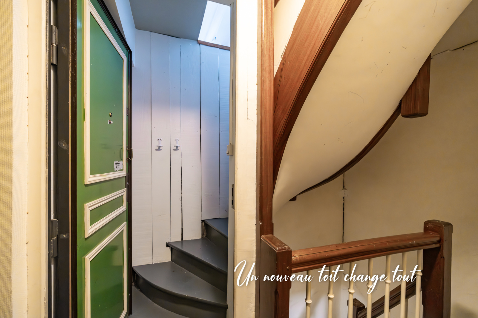 Desservi par un escalier privatif depuis le 4ème étage, venez découvrir un appartement au dernier étage (sans ascenseur) bénéficiant d'une belle lumière et d'un calme absolu.