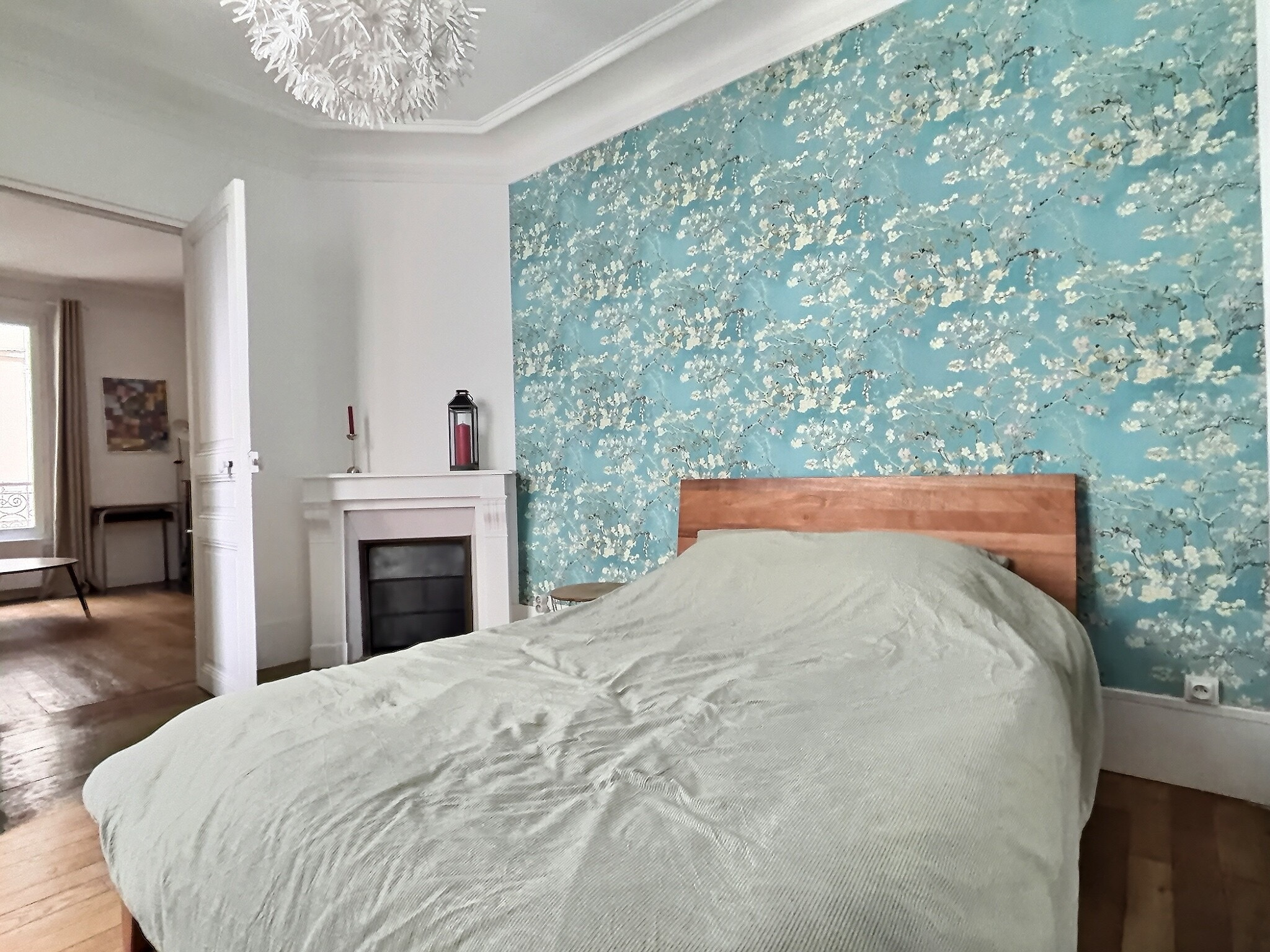 L’ensemble de l’appartement profite d’une vue dégagée sur un vaste jardin, apportant verdure, lumière et sérénité au quotidien