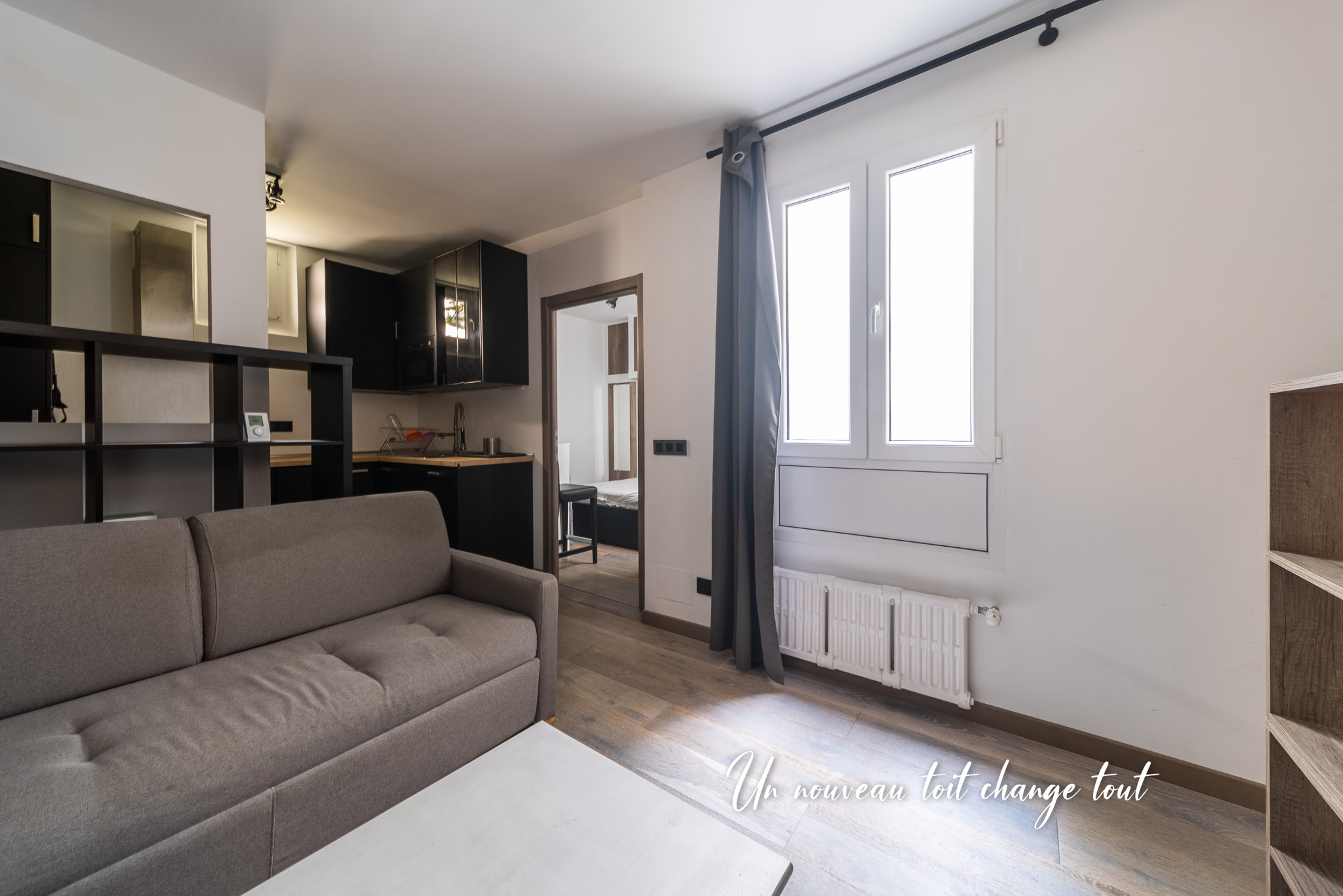 Situé dans un bel immeuble ancien, cet appartement parfaitement agencé se compose d’un spacieux séjour avec cuisine américaine aménagée et équipée, d’une chambre avec rangements, et d’une salle d’eau avec WC.