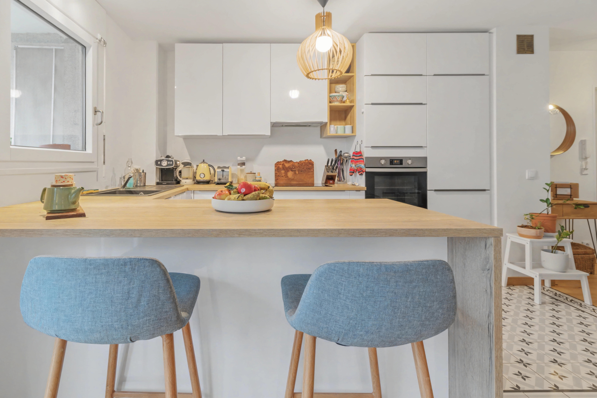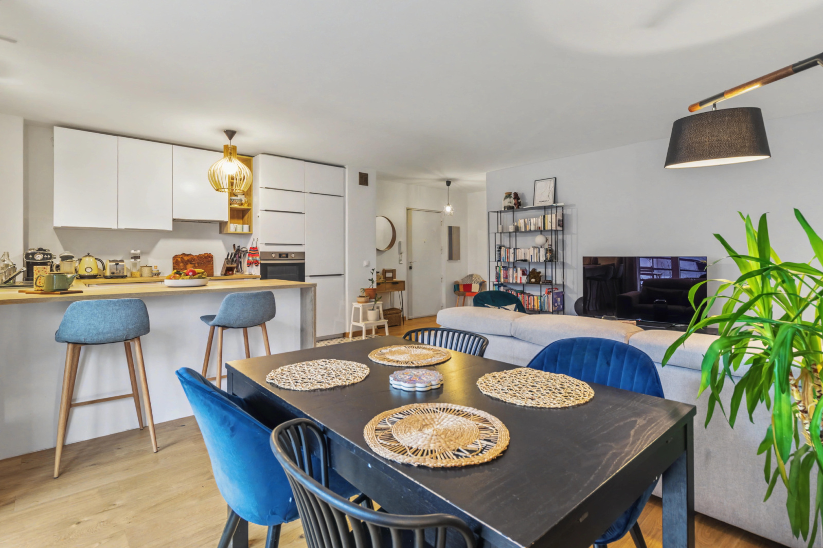 - d’une cuisine ouverte, aménagée et entièrement équipée,