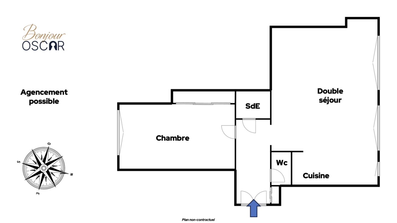 Selon les besoins, l’appartement peut également être repensé en grand 2 pièces avec double séjour, tout en conservant une vraie qualité de volumes et de circulation.
