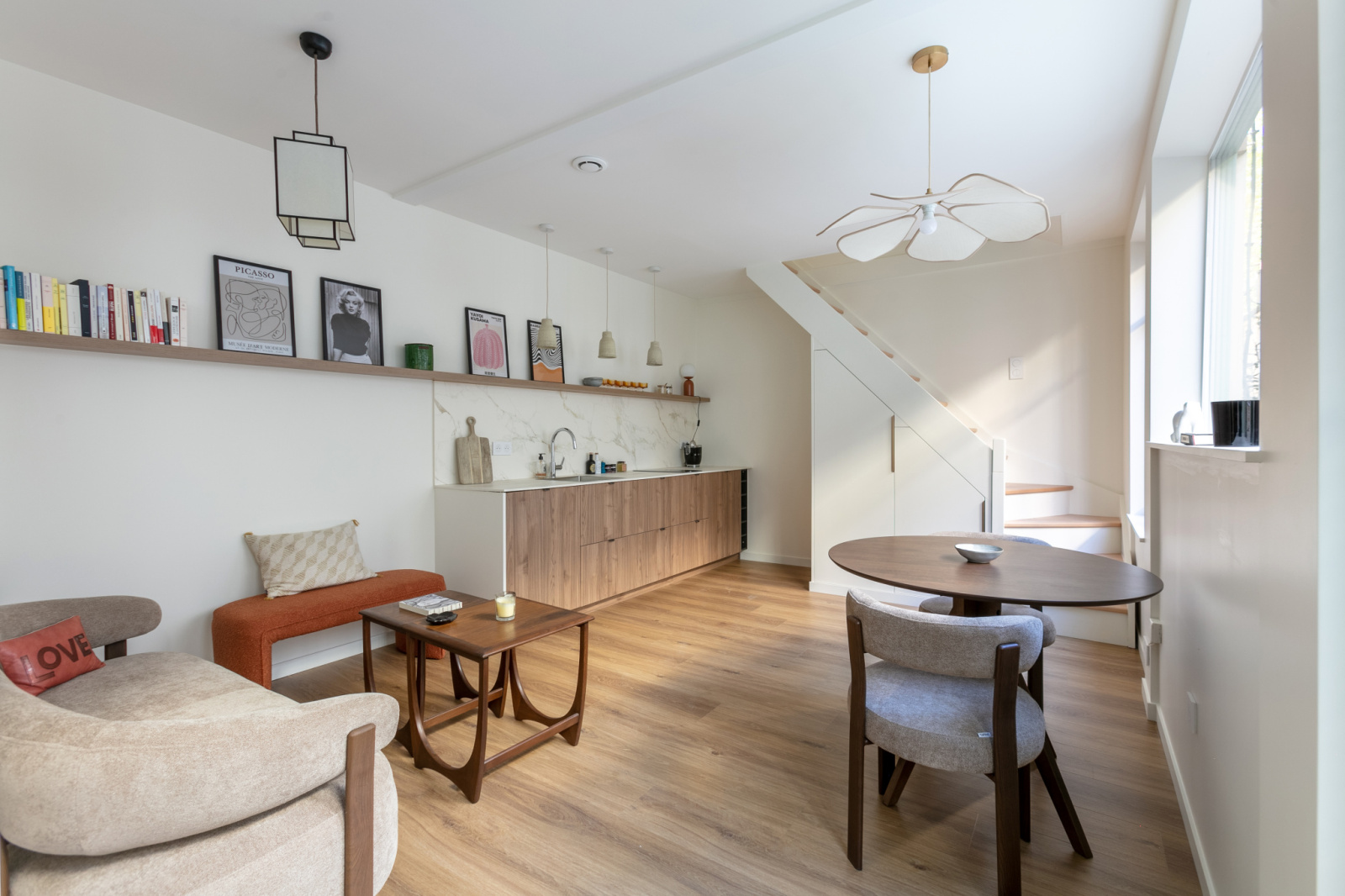 - Un séjour lumineux avec cuisine ouverte toute équipée