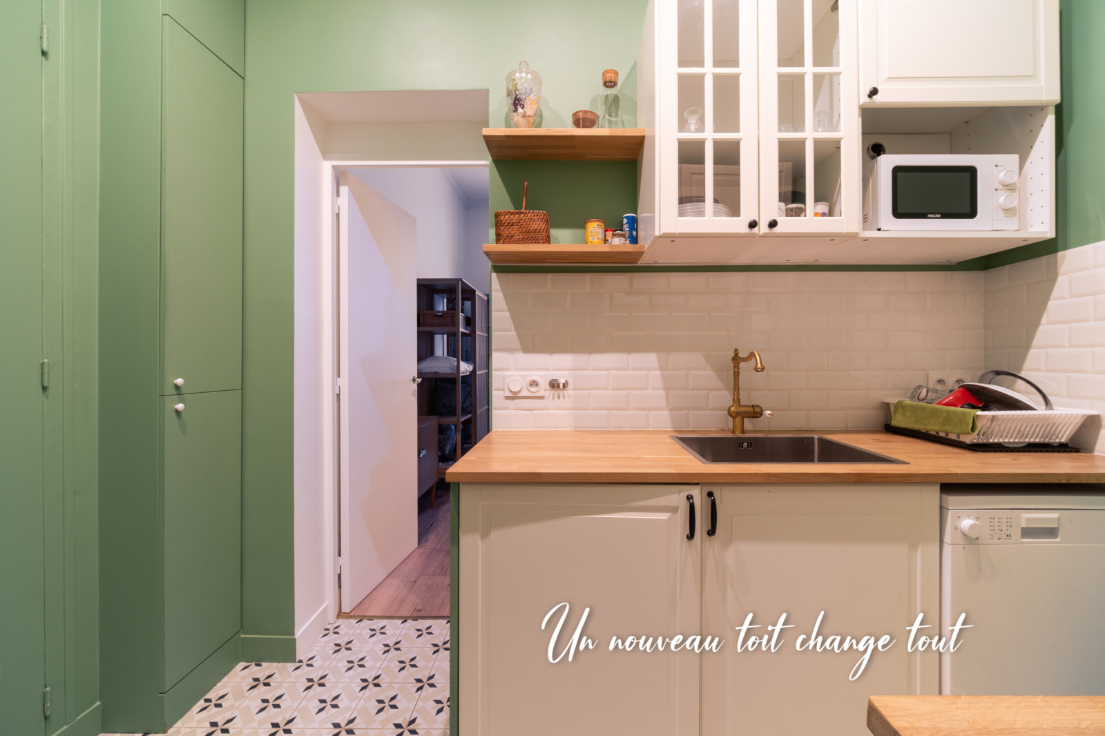 L'appartement est au calme d'une rue fermée à la circulation, exclusivement piétonne. Une belle hauteur sous plafond, parfaite pour imaginer une mezzanine.